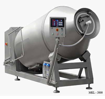 Барабан выполнен из нержавеющей стали. Массажер так же оснащен удобной, легко открывающимся люком для простоты обслуживания и гигиены. Разгрузка сырья происходит после запуска барабана в направлении, противоположном направлению массажа.